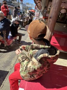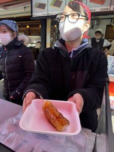 冬の浜辺でひとしきり遊んだ後には、ひもの屋さんへ。